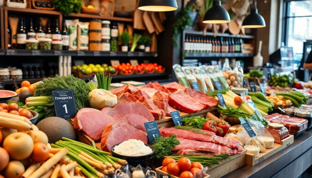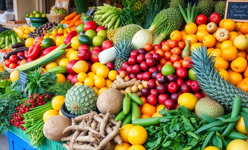 Premium fruits, leafy greens, root vegetables, and exotic imports